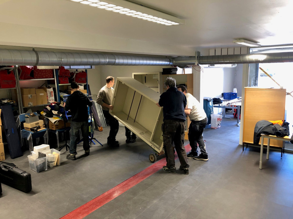 Sen var det dags för själva flytten av all utrustning, och inte minst våra vapenskåp.