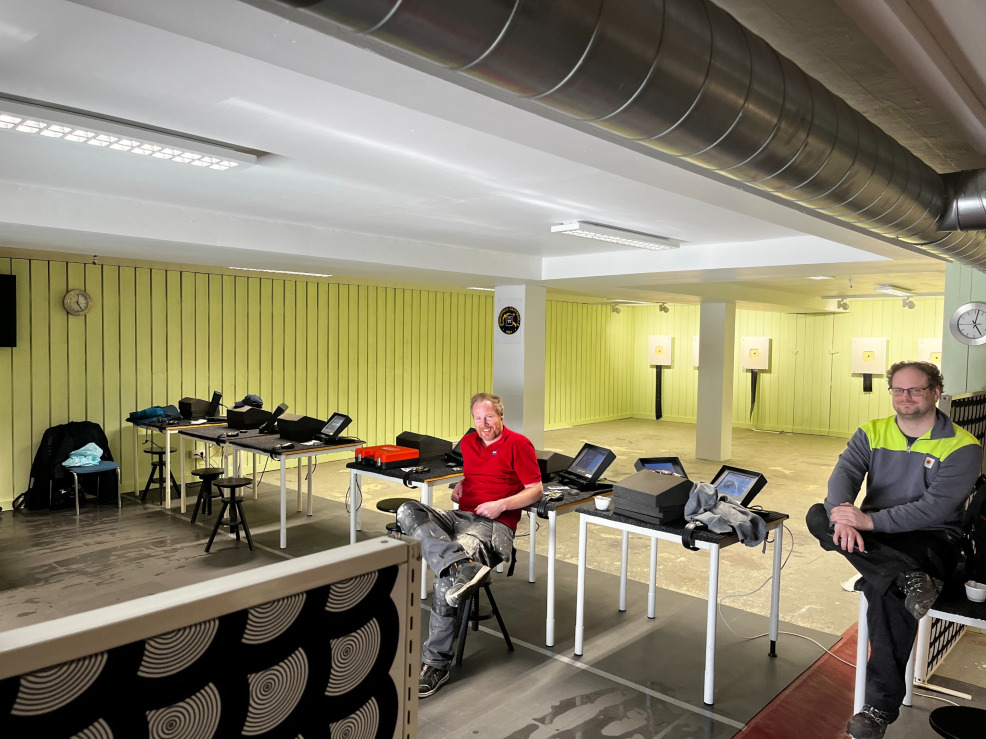 Till slut var det dags för de första skotten i nya hallen för att se att allt fungerade.